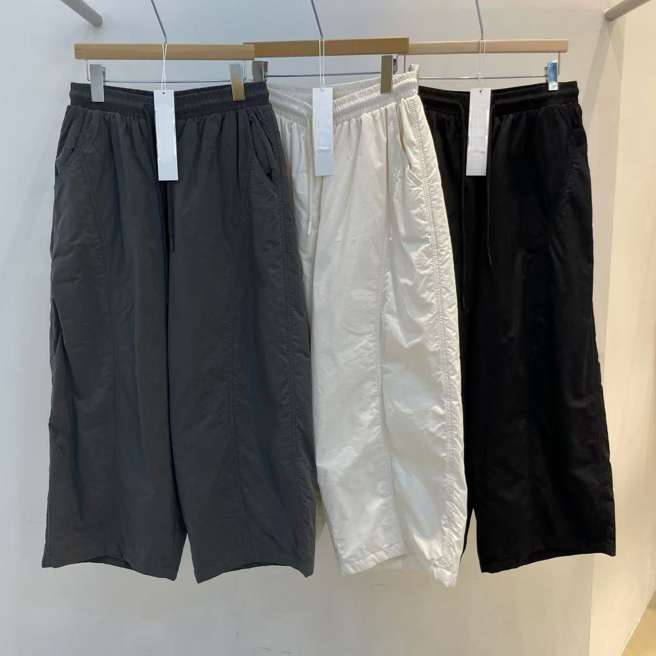 這款褲子擁有寬鬆的剪裁,設計簡約而時尚,適合各種場合。它有三種顏色選擇:黑、白和深灰,這些顏色不僅容易搭配,還能展現不同的風格。褲子的設計包含多個實用口袋,增添了功能性,讓您在日常穿著中更方便。