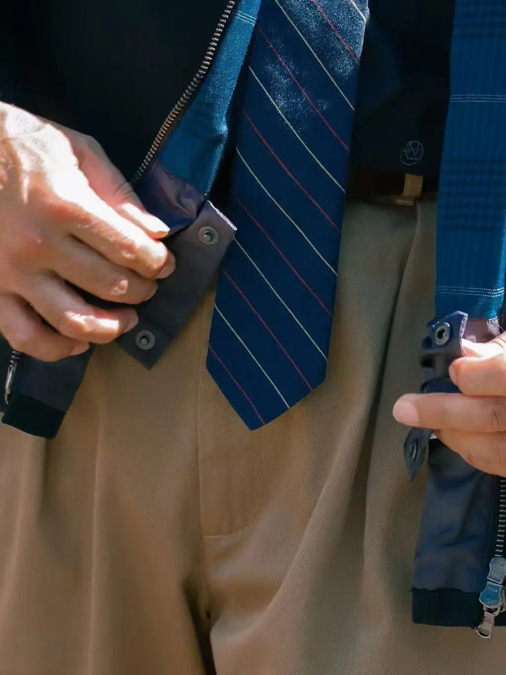 The outer material is a waterproof and breathable 2-layer polyester twill GTX fabric, which has a matte texture visually and looks as smooth as satin from a distance. More importantly, the black color does not attract hair or dust. The torso part uses a Coolmax plaid lining made of a blend of cotton and polyester, which absorbs moisture quickly, is soft and skin-friendly. The arm lining is made of 100% Polyester, ultra-light plaid tear-resistant nylon. The pocket lining is also made of 2L GTX, showing off its style.