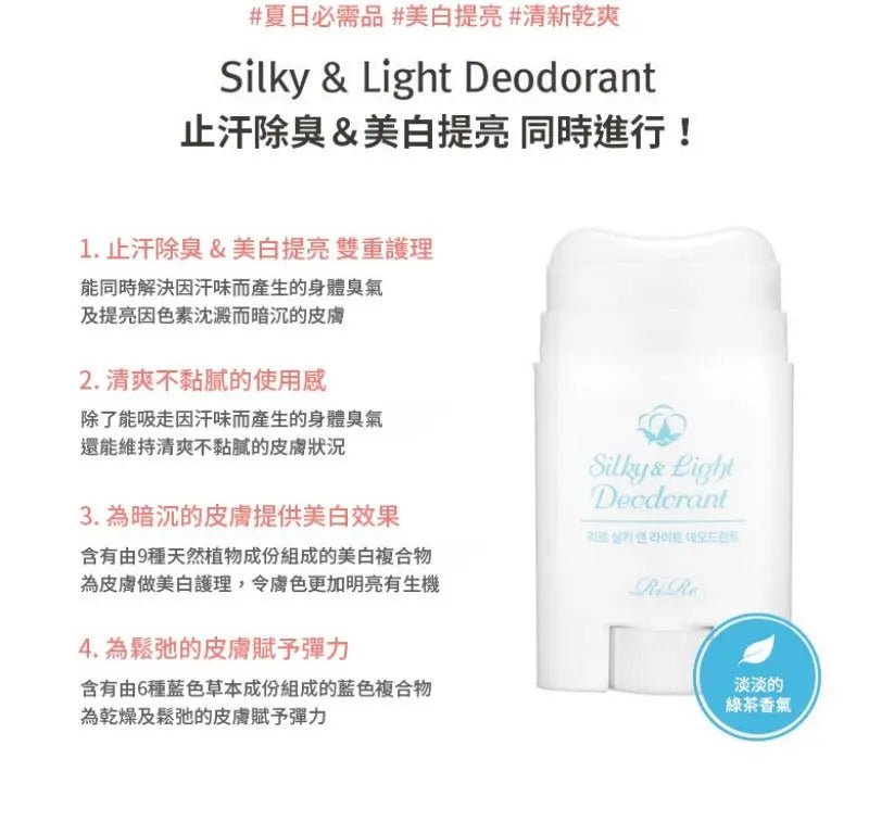 If you want to be able to raise your hands without any burden in the summer, RiRe Underarm Whitening and Moisturizing Antiperspirant Deodorant Stick can help you!