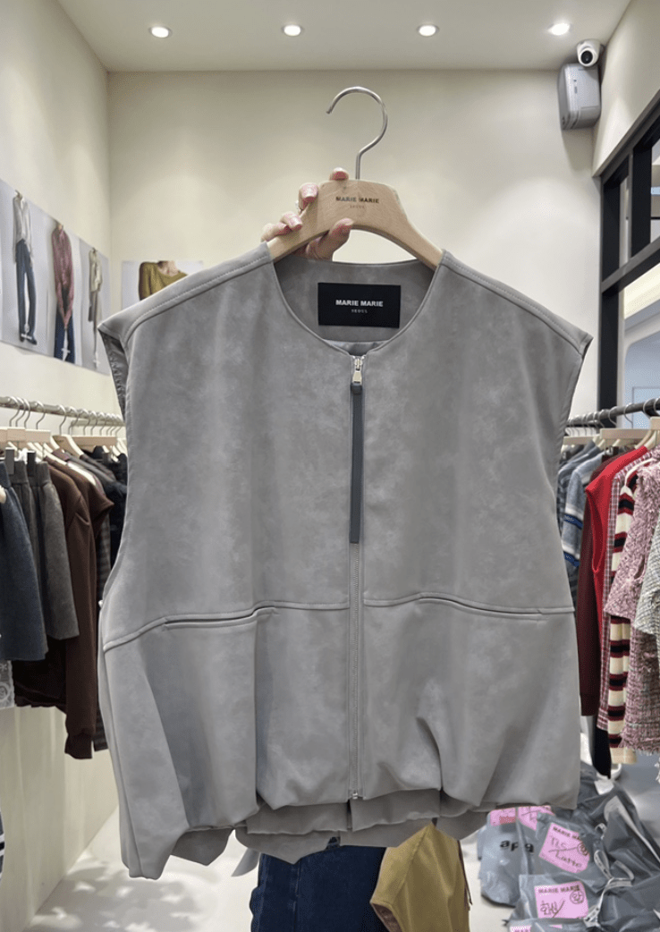 Suede Zip-Up Vest / A-Line Suede Skirt (Direct from Korea)