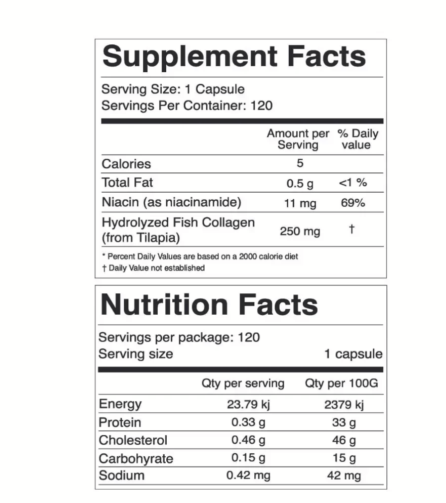 - 活性成分:海洋膠原蛋白、菸鹼酸(菸鹼醯胺)、葵花籽油。