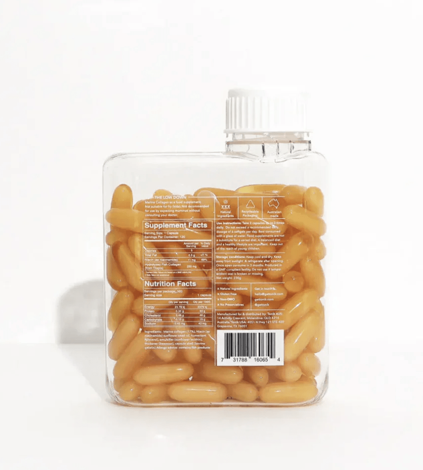 隨時提供海洋營養,增強你的健康 (無魚腥味或異味) 海洋膠原蛋白經臨床證明可刺激膠原蛋白,由於較小的粒徑,與牛或豬等其他膠原蛋白選擇相比,被認為是最具生物可利用性的膠原蛋白肽形式 250 毫克濃縮,天然純淨且濃縮的膠原蛋白形式,進入體內輕輕輕鬆地吸收,比通過皮膚更直接,讓海洋膠原蛋白從內到外發揮真正的功效。