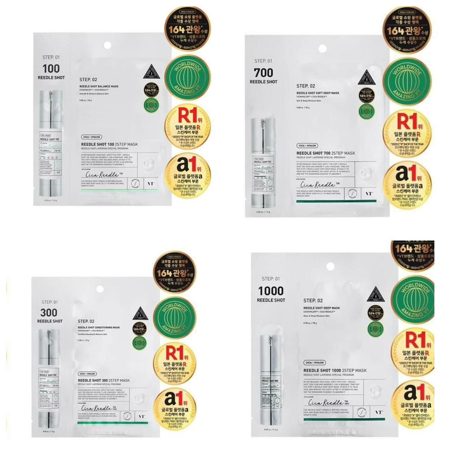 Korean VT Centella Asiatica Microneedle Essence Mask Two Steps 🤍| VT Reedle Shot 2 STEP Mask💉 ❤4 microneedle options (1 set of 4 pieces)