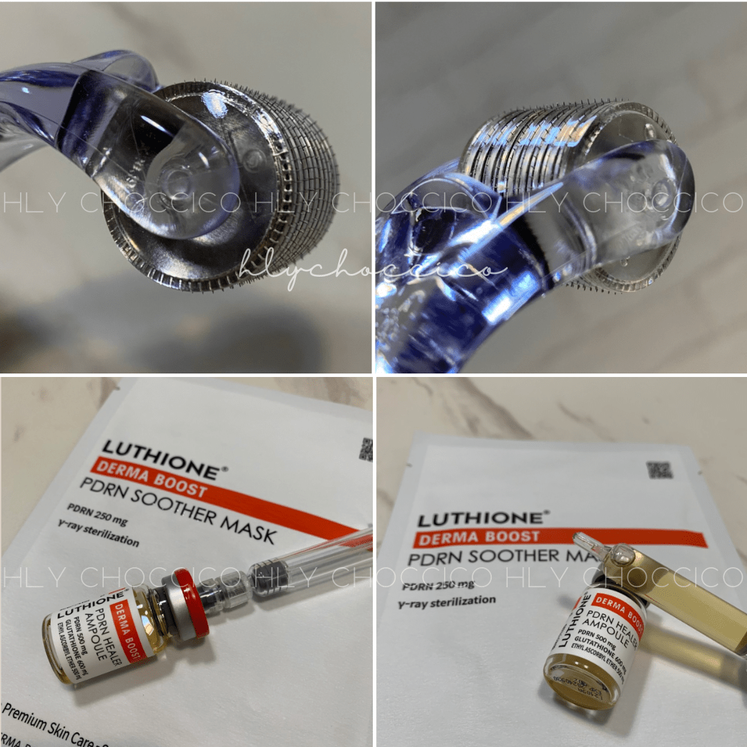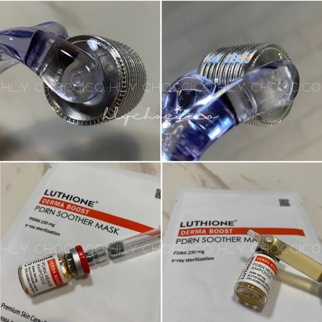 ⭐套裝包裝:白玉美白針淡斑安瓶( 5ml*5瓶)x 1盒白玉美白針面膜(5片)x 1盒白玉導入滾輪微針x 1個【LUTHIONE 白玉美白針淡斑安瓶(一盒 5ml*5瓶)】‼️強力的再生活膚 + 豐盈 + 水光💦 + 美白✨安瓶的誕生‼️✅主要成分全为 EWG 绿色 1 级🌱💡主要原料 :💙PDRN 1瓶含500mg 🧡乙基维生素C 500mg💛谷胱甘肽 600mgPDRN是什麼(三文魚DNA)?🐟🔸通過持續刺激生長因數的產生來組織再生。通過啟動皮膚再生能力改善皮膚環境,恢復皮膚結構,使皮膚恢復彈性和健康💃🏻🔹從與人類的堿基組成一致的三文魚DNA成分中提取,幫助皮膚組織再生的物質🔸刺激成纖維細胞 (Fitbroblast) 再生豐富的膠原蛋白和彈性蛋白,以提供抗皺和縮小毛孔的效果💡產品介紹及功效:✅美白淡斑、去黃、抑制黑色素✅改善雀斑、斑點✅抗皺和收細毛孔✅激活細胞組織再生、增生, 提拉彈性✅改善膚質、肌理【白玉美白針面膜(一盒5片)】✅美白抗皺, 雙重機能性✅含 PDRN(三文魚魚白中提取的 DNA)及谷胱甘肽,密集鎮靜&滋潤肌膚✅保濕💦和舒緩效果增強肌膚屏障,平衡肌膚油水分💡使用方法:1) 準備 1 瓶安瓿,由下往上打開瓶蓋。2) 將注射器推到安瓿頂部橡膠的中心部位。3) 將瓶身傾斜後拉出安瓿精華液。※ 注射器容量為2.5ml。4) 取適量塗抹於所需部位後,立刻使用滾輪接住精華並在皮膚表面按水準/垂直/傾斜的各個方向,像按摩一樣施力均勻地輕輕來回滾動 。 ※請勿一次塗完全臉後才使用滾輪,應少量多次在特定部位集中滾動,。 ※請儘量避免在皮膚較薄的部位使用(眼睛和嘴唇周圍), 儘量在15-20分鐘內完成。5) 在滾動後,立刻使用面膜鎮靜肌膚。🔅[使用週期] 一周使用一次,一次使用 1 瓶, 一盒為5周分量。💫[ 如何消毒滾輪和注射器 ]1) 使用前後滾輪和注射器一定要進行消毒。2) 在流動的水下清洗產品。3) 浸泡於消毒用乙醇約 5 至 10 分鐘。4) 浸泡5-10分鐘之後自然風乾並妥善保存。💫使用微針tips👍🏻白玉專業導入滾輪微針0.25mm是不需要搽麻膏,針對表皮下導入正常使用,不會出血! 不是舊式的1至2mm針長,不是針對做深層凹凸洞的,所以不建議用力過度做到出血