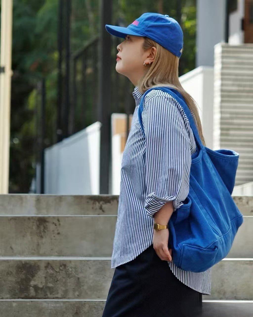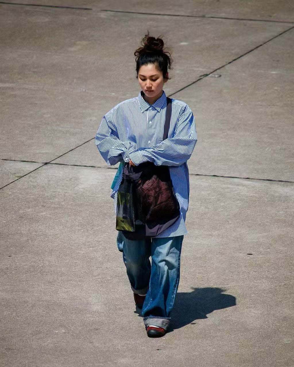 版型與剪裁|松弛有度的當代輪廓寬松輪廓:襯衫采用寬松剪裁,留有恰到好處的空間感,活動自如且適應多層次穿搭。圓角下擺:基於古著襯衫的圓角下擺設計,無論是束進下裝還是自然外放,均能保持利落線條。