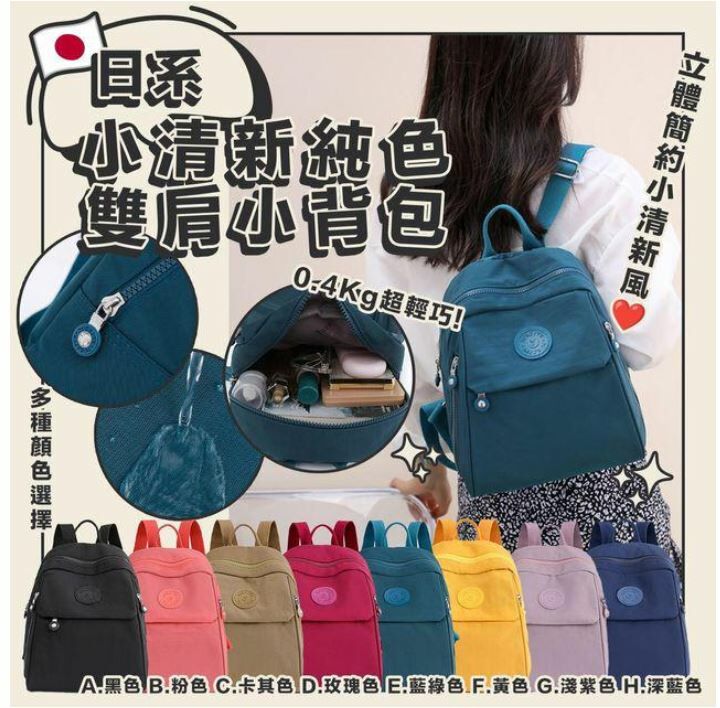 日系小清新純色雙肩小背包 *粉色,藍綠 缺貨*